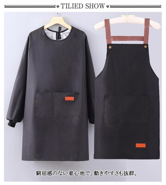 レディース 割烹着 ポケット 袖付き かっぽう着 大きいサイズ エプロン 長袖 おしゃれ 防水 メンズ 保育士 料理教室 キッチン 保育士 エプロン 無地 40代 防油 ゆったり 大きめ シンプル ガーデニング 20代 30代 2枚セット 家事