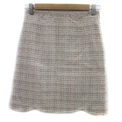 【中古】スウィングル Swingle 台形スカート ミニ丈 チェック柄 ツイード レース S ピンクベージュ レディース