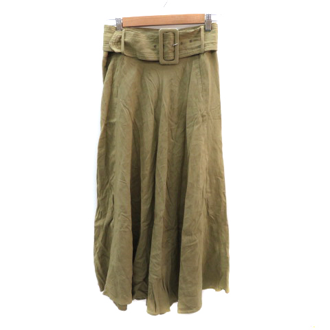 【中古】ザラ フレアスカート ギャザースカート ロング丈 ウエストベルト付き 麻 リネン混 M ベージュ レディース