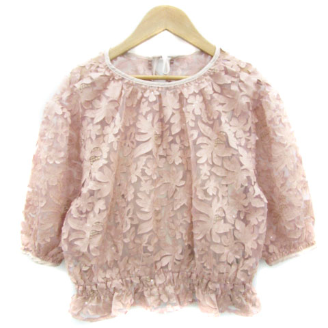 【中古】ジルバイジルスチュアート JILL by JILLSTUART ブラウス カットソー 五分袖 花柄 総柄 F ピンク レディース