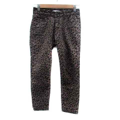 【中古】アズールバイマウジー テーパードパンツ 七分丈 ヒョウ柄 レオパード柄 M 茶色 ブラウン 黒 ブラック