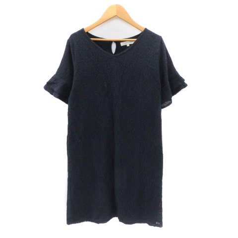 【中古】グローブ grove ワンピース ミニ丈 半袖 Vネック レース L 紺 ネイビー /YK43 レディース