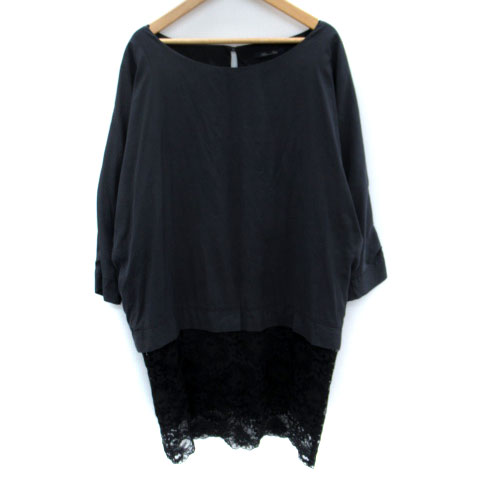 【中古】アダムエロペ Adam et Rope' ワンピース ひざ丈 七分袖 ラウンドネック レース 切替 38 M 紺 ネイビー