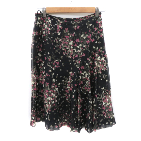 【中古】コムサデモード フレアスカート シフォンスカート ミモレ丈 花柄 9 マルチカラー 黒 ブラック レディース