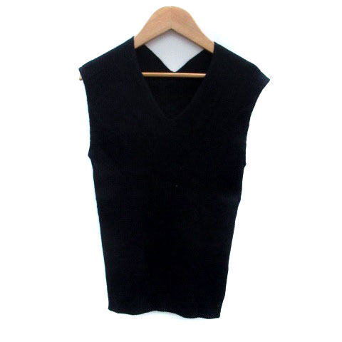 【中古】ロペ ROPE リブニット カットソー Vネック ノースリーブ 無地 38 M 紺 ネイビー /HO17 レディース