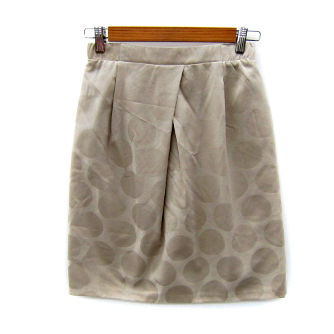 【中古】ストロベリーフィールズ STRAWBERRY-FIELDS フレアスカート ひざ丈 ドット柄 水玉柄 ベージュ レディース
