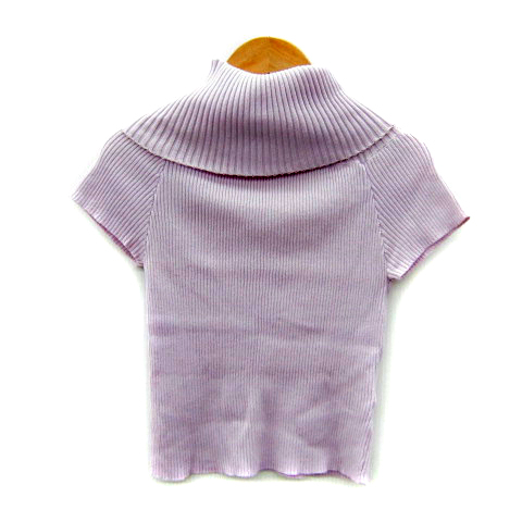 【中古】フリージアバイフリーズマート リブニット カットソー 半袖 オフタートルネック M ラベンダー レディース