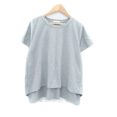 【中古】スタディオクリップ カットソー ラウンドネック 半袖 レイヤード風 プリーツ グレー オフホワイト