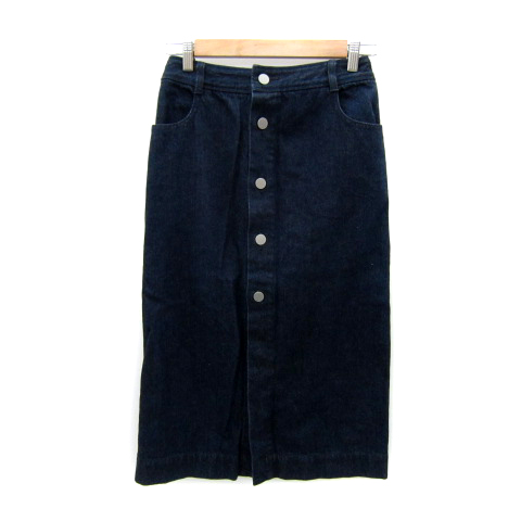 【中古】ザヴァージニア デニムタイトスカート ボタンダウンスカート ロング丈 38 M 紺 ネイビー /SY15 レディース