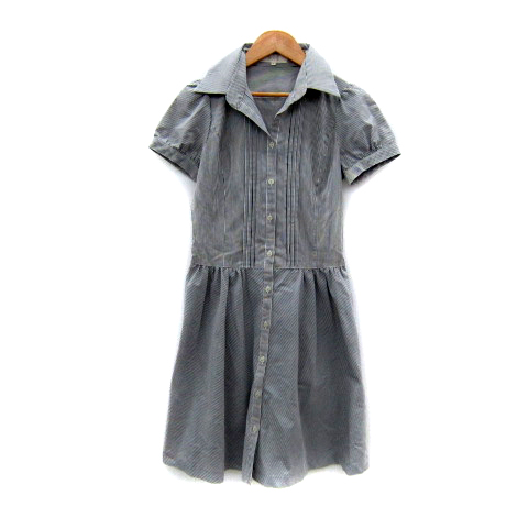 【中古】ロペ シャツワンピース ひざ丈 半袖 スキッパーカラー ストライプ柄 7 白 チャコールグレー レディース