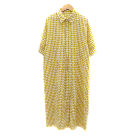 【中古】アビトーキョー ABITOKYO シャツワンピース ロング丈 半袖 ギンガムチェック柄 F 黄色 イエロー レディース