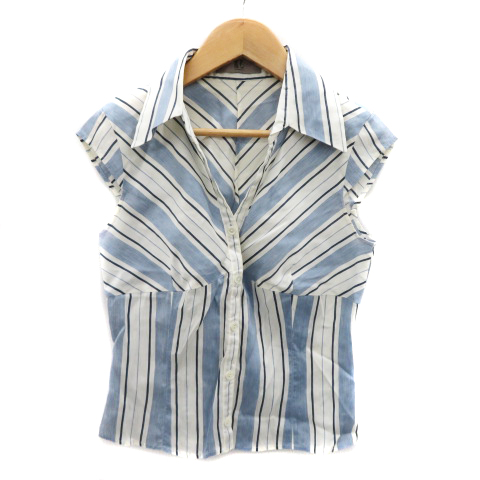 【中古】カールラガーフェルド シャツ ブラウス ノースリーブ ストライプ柄 リネン 38 M オフホワイト レディース