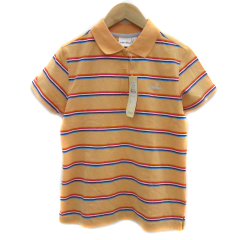 【中古】エレッセ ellesse ポロシャツ 半袖 ボーダー柄 ロゴ刺? S マルチカラー オレンジ /YS22 レディース