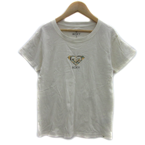 【中古】ロキシー ROXY Tシャツ カットソー 半袖 ラウンドネック ロゴプリント S オフホワイト レディース