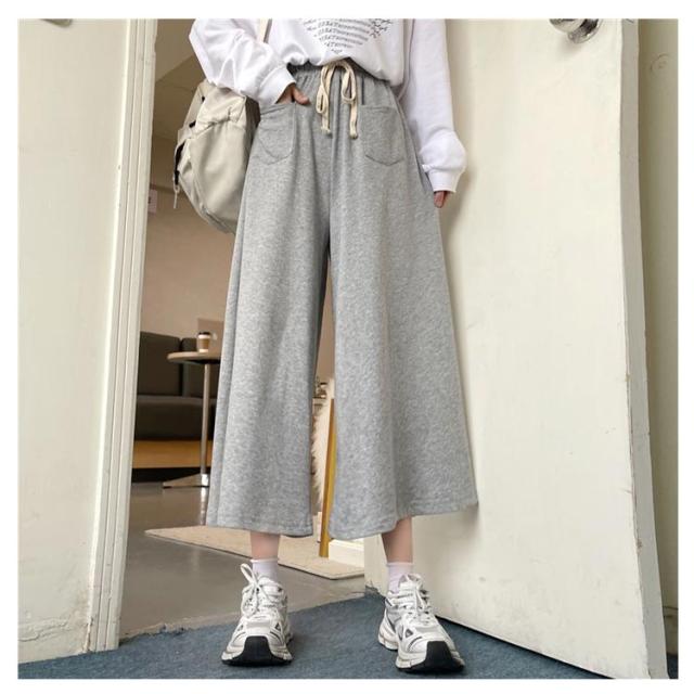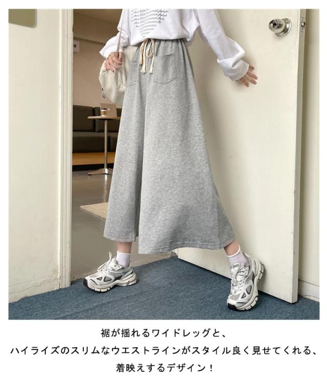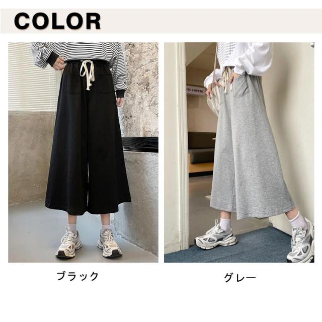 春 春 秋 ポケット付き ワイドパンツ ボトムス 送料無料 スウェット カジュアルパンツ ゆったり アンクル丈ズボン 送料無料 フレアパンツ 無地 レディース ハイウエスト 夏 ガウチョパンツ 体型カバー 7分丈 ズボン リラックス パンツ 部屋着