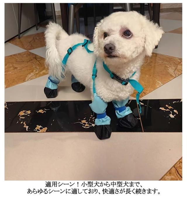 お出かけ 肉球保護 脱げない 防水 犬用ブーツ レインパンツ 滑り止め 汚れ防止 犬服 屋外四本足パンツ 犬用レッグカバー 犬用レッグカバー 散歩 梅雨 スペンダー付き犬用パンツ 調節可能 サスペンダー付き 脱げない 犬の靴