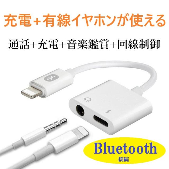 2in1 ライトニング iPhone/iPad対応 変換プラグ 3.5mm 変換アダプター イヤホンジャックアダプター Bluetooth接続 充電ポート付 通話+充電+音楽鑑賞+回線制御