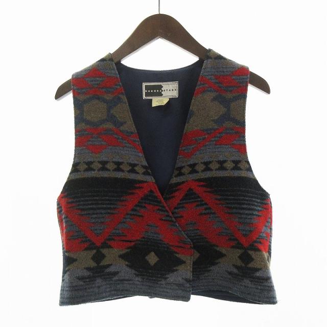 【中古】ロンダスターク RHONDASTARK ベスト ジレ ダブル ネイティブ柄 ウール混 M マルチカラー メンズ