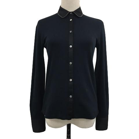 【中古】ププラ PUPULA シャツ ブラウス ニット ラメ 長袖 38 紺 黒 ネイビー ブラック レディース
