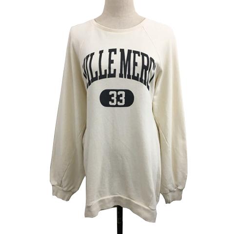 【中古】ラッセル トレーナー スウェット プルオーバー 刺繍 プリント ロゴ ドルマンスリーブ 長袖 M 白 黒