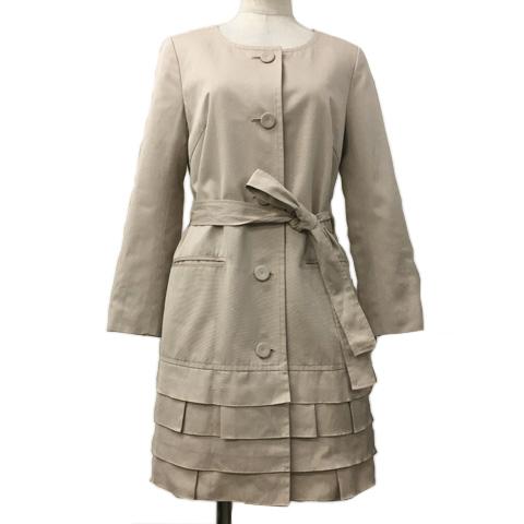 【中古】フリーズフレーズ コート スプリングコート ノーカラー ティアード ベルト付き 無地 長袖 S ベージュ