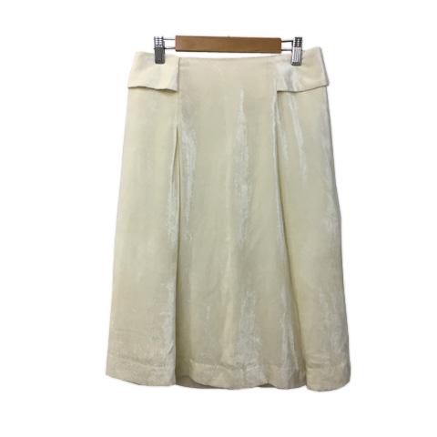 【中古】アルチザン ARTISAN スカート フレア ひざ丈 シルク ベロア 光沢 タック 無地 9 白 ホワイト レディース