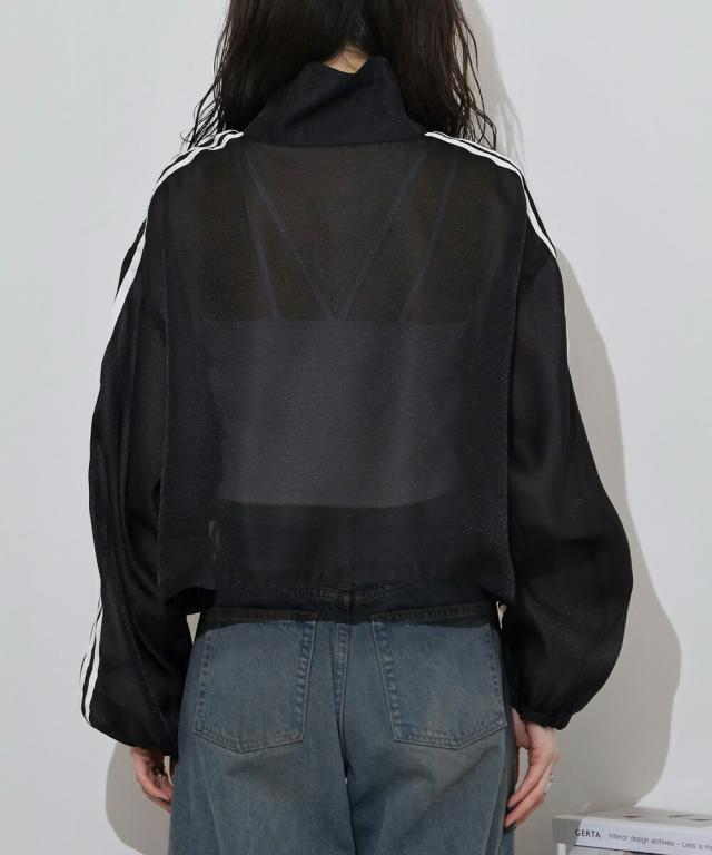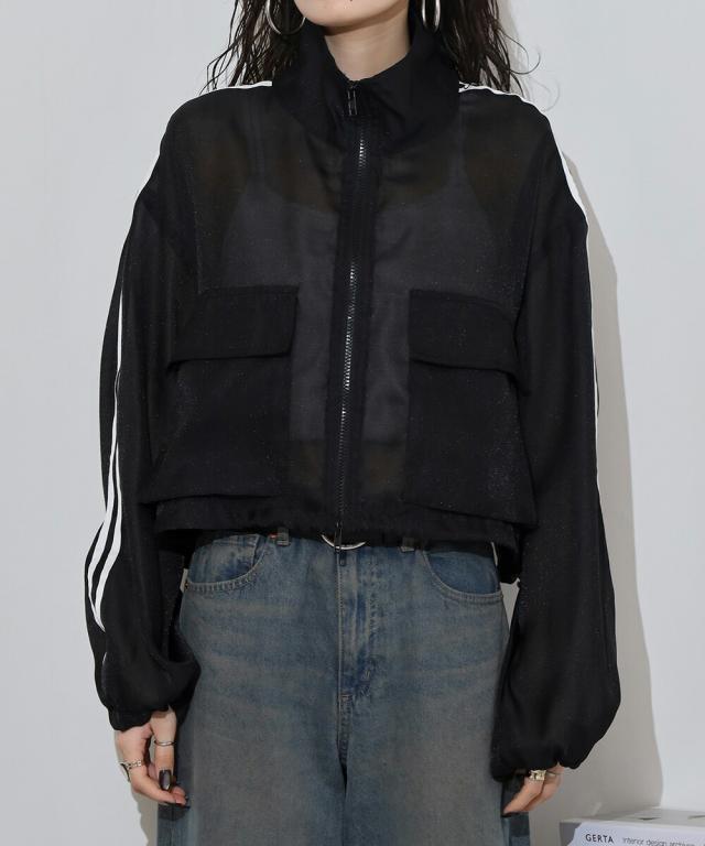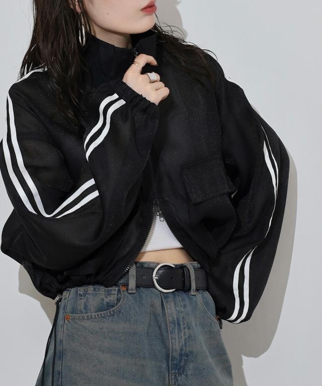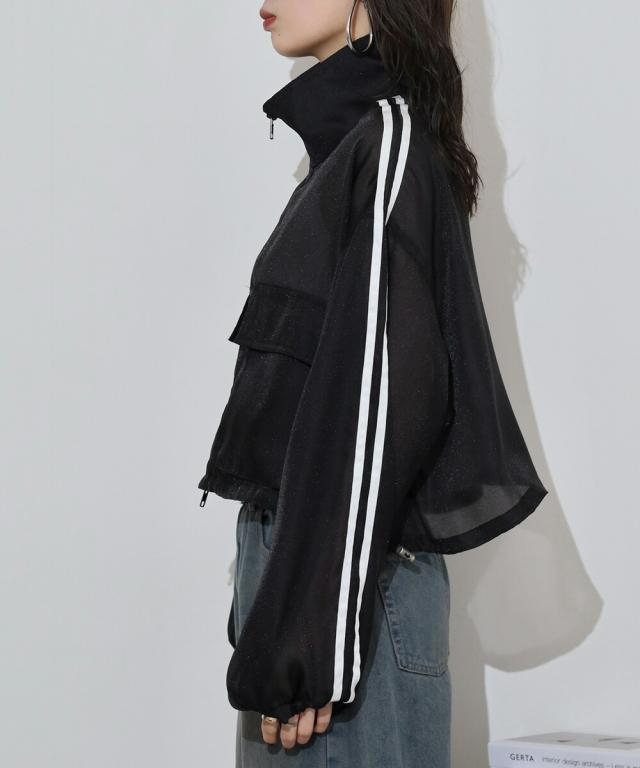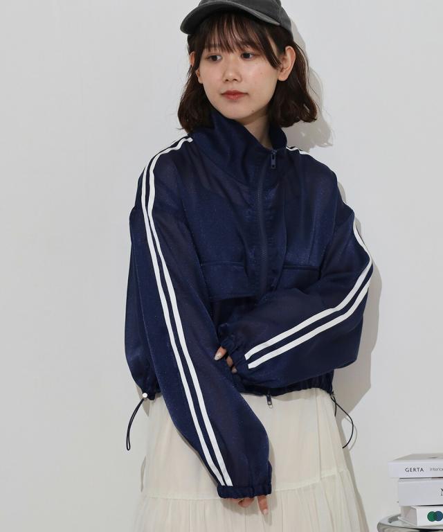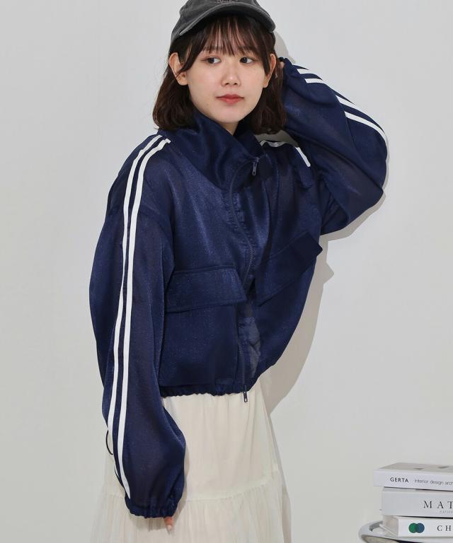 冬新作 大きいサイズ レディース オーガンシアー ショート丈 トラックジャケット ブルゾン ジップアップ 袖ライン入り スポーツミックス シアートップス 韓国ファッション カジュアル 可愛い 体型カバー M L LL 3L 4L 春服 冬新作