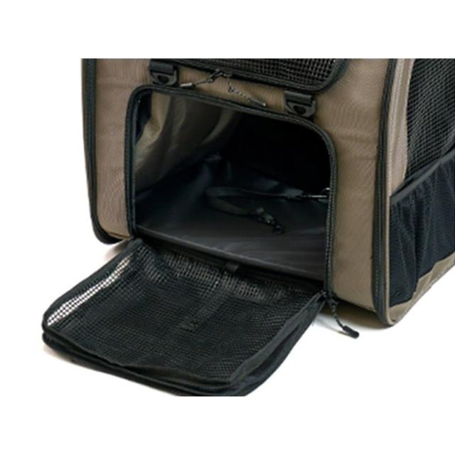 サイドのメッシュ窓を開き、底板に付属したクッションを出して使うことが可能。