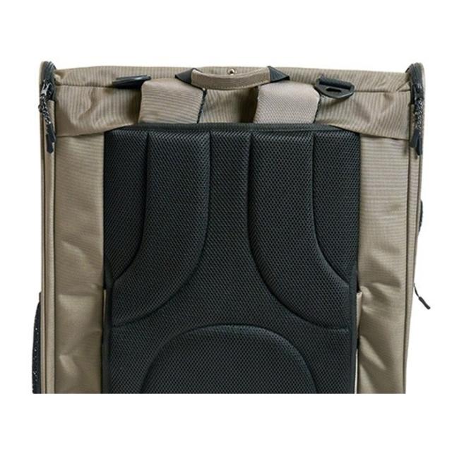 シンプルなデザインと落ち着いたカラーリングでユニセックスに使える、バックパック型ペットキャリー。