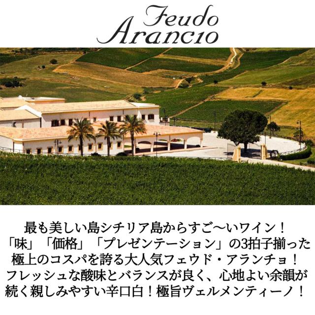 最も美しい島シチリア島からすご?いワイン! 「味」「価格」「プレゼンテーション」の3拍子揃った 極上のコスパを誇る大人気フェウド・アランチョ! フレッシュな酸味とバランスが良く、心地よい余韻が 続く親しみやすい辛口白!極旨ヴェルメンティーノ!