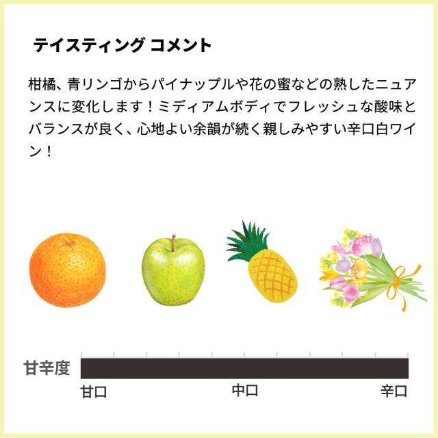 ![]() ■ぶどう品種:ヴェルメンティーノ種100% ■生産地:イタリア/シチーリア/DOC シチリア 青い海と真っ赤な太陽!歴史と文化の宝庫!地中海で最大で最も美しい島シチリア島からすご~いワイン!「味」「価格」「プレゼンテーション」の3拍子そろった極上のコストパフォーマンスを誇る大人気ワイン! 暖かいエリアながら酸とミネラルが感じられるバランスの良い白ワイン品種の個性をしっかりと表現された辛口白ワイン!石灰岩を多く含んだ粘土質土壌からの樹齢15年以上のヴェルメンティーノ種100%をステンレスタンク発酵!ステンレスタンク6ヶ月熟成でリリース! 柑橘、青リンゴからパイナップルや花の蜜などの熟したニュアンスに変化します!ミディアムボディでフレッシュな酸味とバランスが良く、心地よい余韻が続く親しみやすい辛口白ワイン!シチリア産極旨ヴェルメンティーノが待望入荷! |