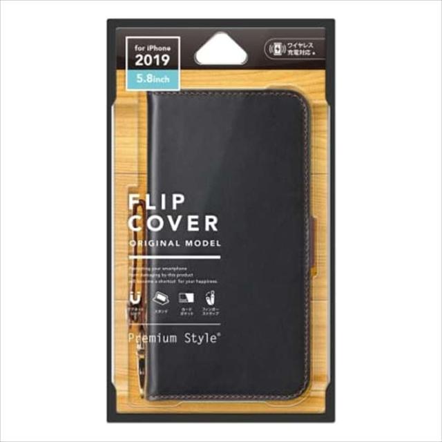 iPhone 11 Pro 5.8インチ iPhone11Pro 対応 ケース カバー フリップカバー PUレザーダメージ加工 手帳型ケース 二つ折り シンプル 無地ブラック PGA PG-19AFP02BK