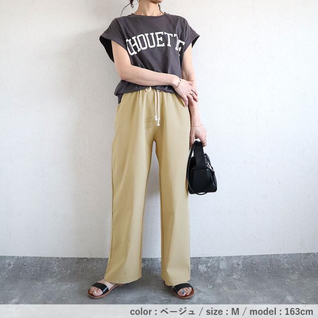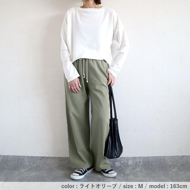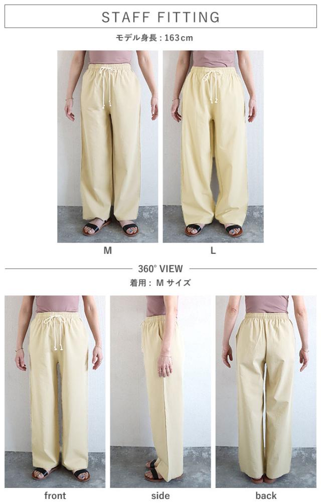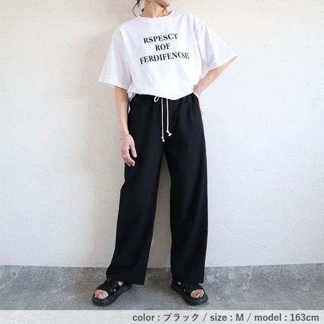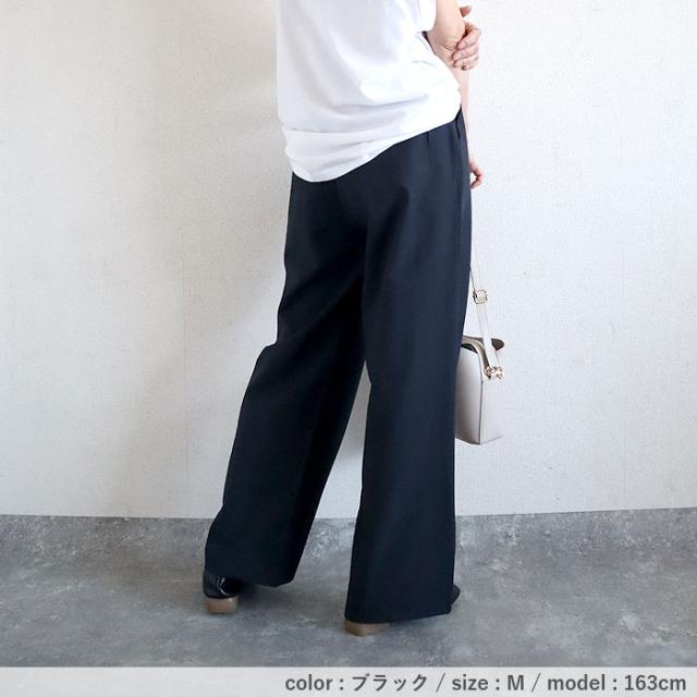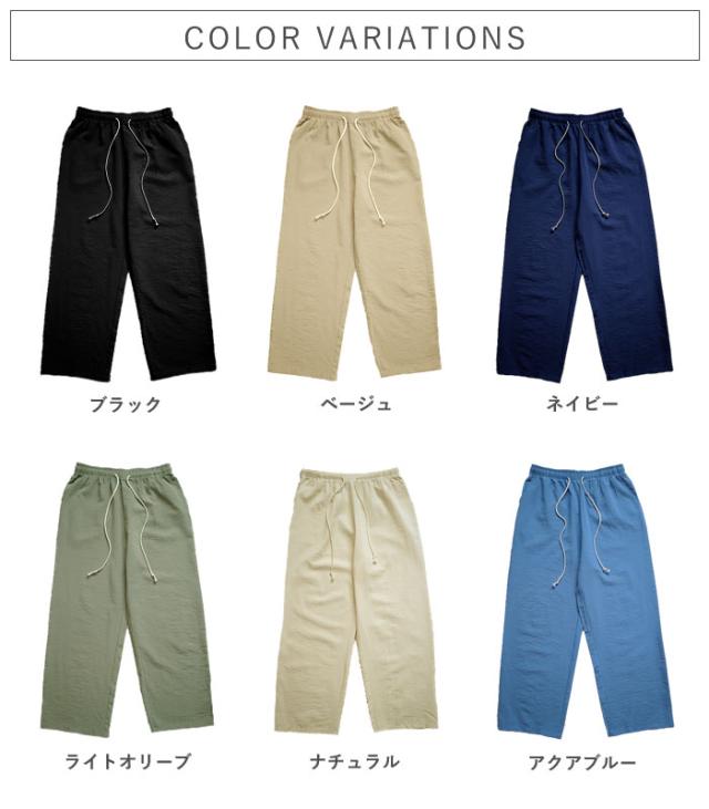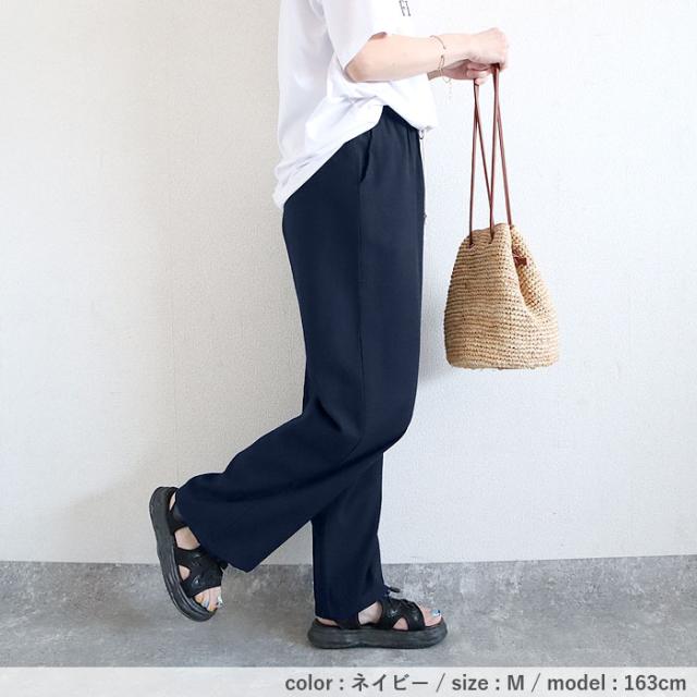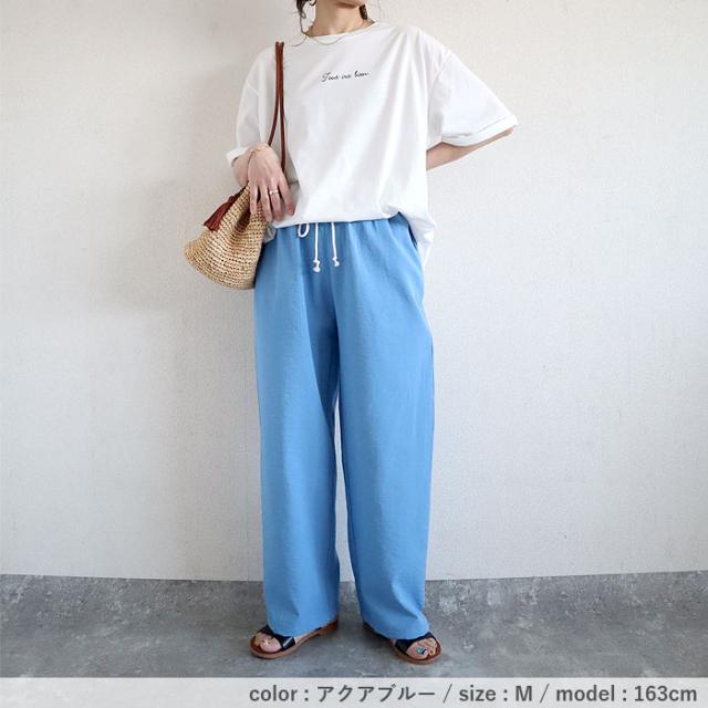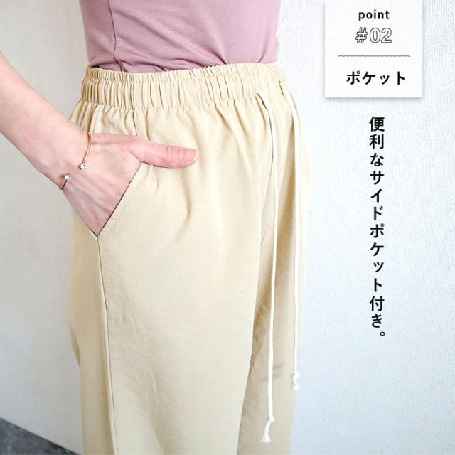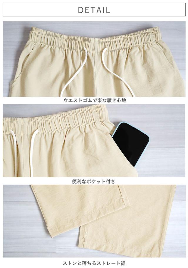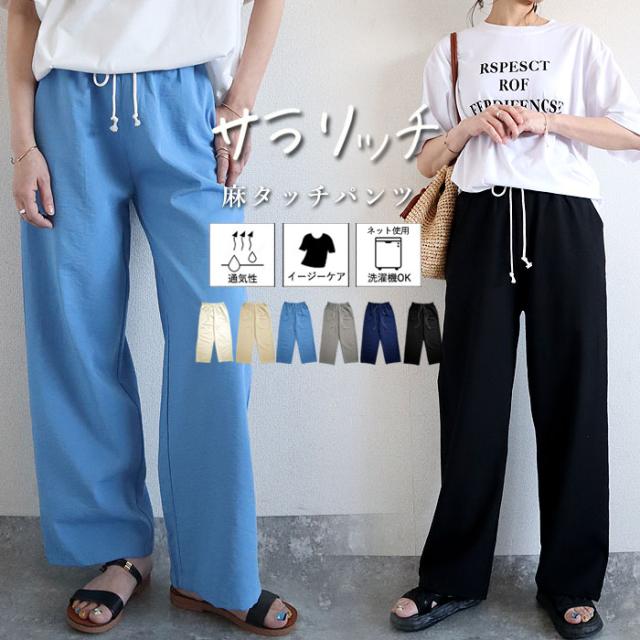 秋新作 パンツ レディース ワイドパンツ ストレート裾 春 夏 白 黒 無地 麻風 ウエストゴム ポケット付[郵3]^b486^ ★