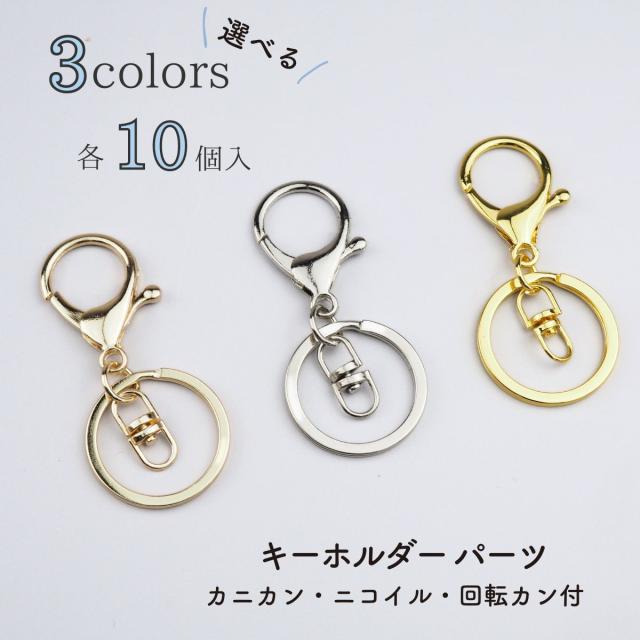 10個セット カニカン ナスカン ニコイル パーツ キーホルダー パーツ ゴールド シルバー イエローゴールド KC金 金具 回転カン フック アクセサリーパーツ ハンドメイド パーツ 資材 素材 手芸