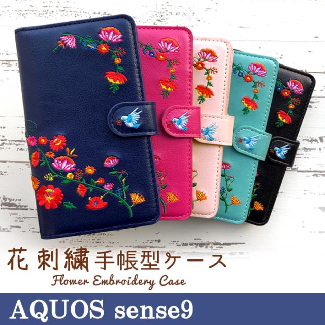 AQUOS sense9 SHG14 / SH-53E / A405SH / SH-M29 ケース カバー 手帳 手帳型 花刺繍 スマホケース スマホカバー アクオス センス9 SH-M29