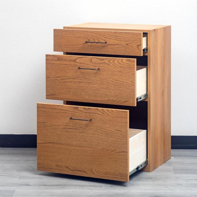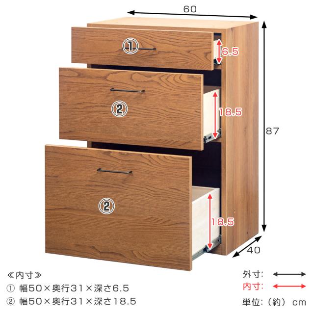 3段チェスト 本体 組合せキッチン収納 幅60cm ワイズシリーズ 日本製 ( wise 3段 チェスト 組み合わせ キッチン収納 完成品 オーク前板 引き出し 収納 棚 作業台 家具 3杯 スライドレール )