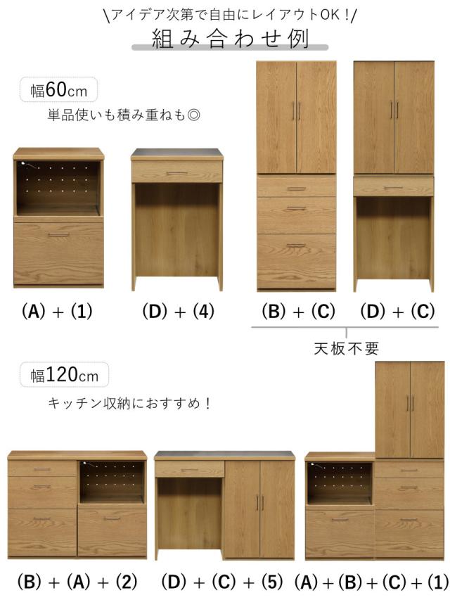 可動棚開き戸 本体 組合せキッチン収納 幅60cm ワイズシリーズ 日本製 ( wise 開き戸 キャビネット 組み合わせ キッチン収納 完成品 オーク前板 収納 食器棚 棚 作業台 家具 可動棚 )
