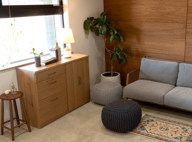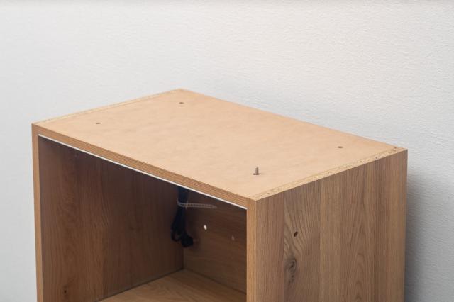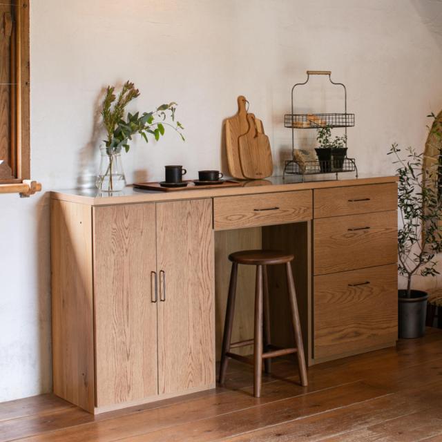 | 材質 | 前板:オーク突板、オイル仕上げ 側面、背面:プリント 取っ手:真鍮 |