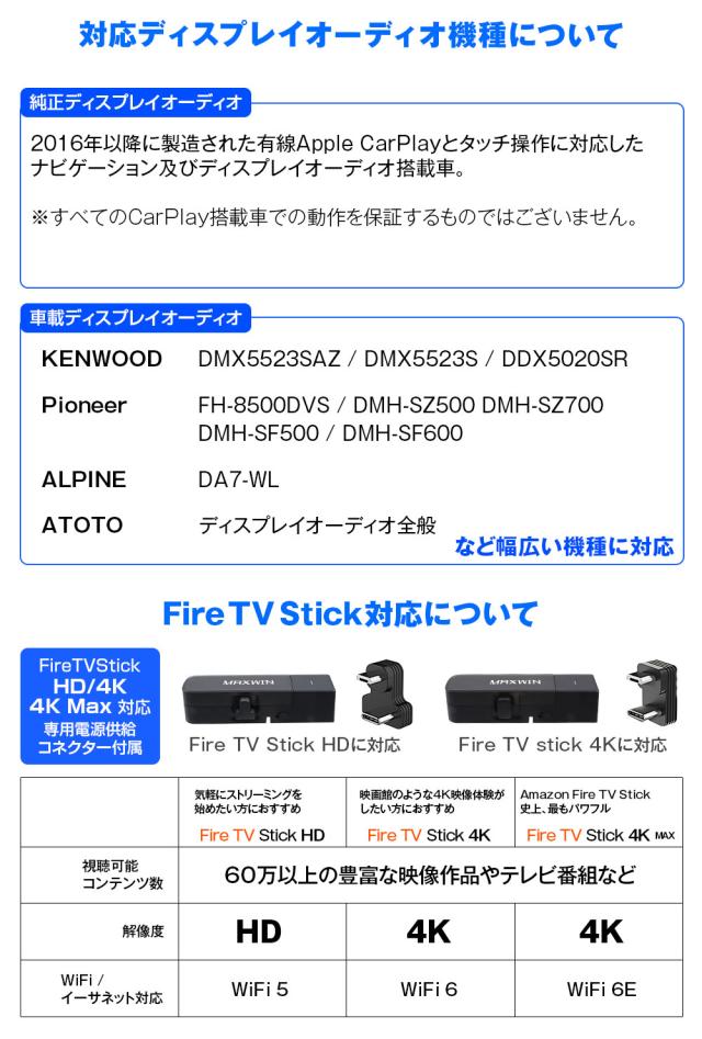 Fire TV Stick ワイヤレス接続 Carplay AndroidAuto 対応 車載 ディスプレイオーディオ HDMI DA-AD02-PRO