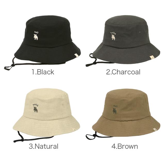 スウェーデン生まれのブランド moz/モズから、日差しの強い日に活躍間違いナシのバケットハットが入荷。フロントにブランドアイコンであるヘラジカのワンポイントロゴが刺繍されたシンプルなデザイン。