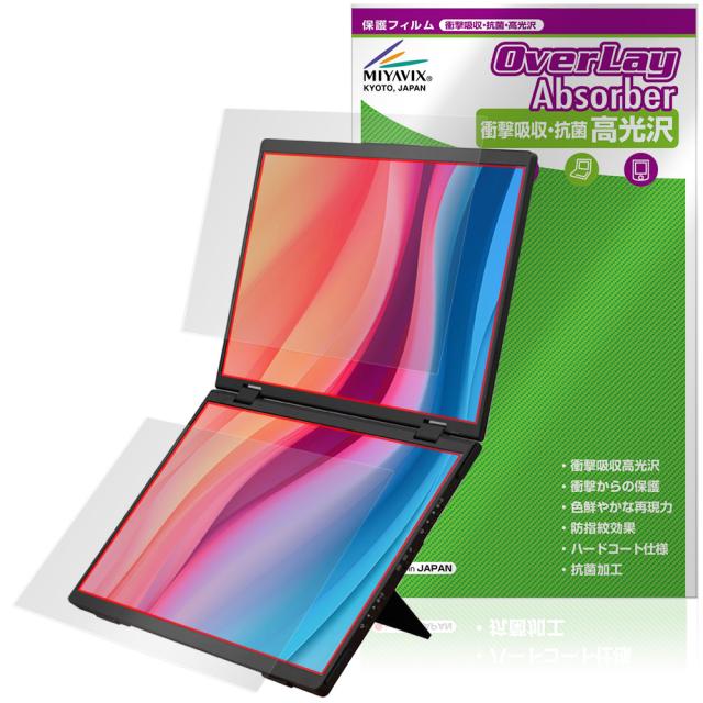 THANKO 14インチ 2画面ポータブルモニター DMAC24HBK 上画面 下画面 フィルム OverLay Absorber 高光沢 衝撃吸収 ハードコート 抗菌