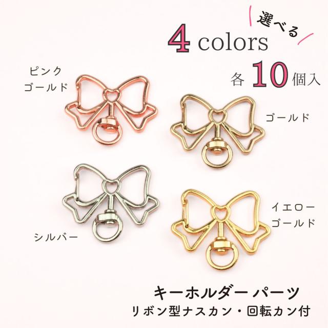 10個セット ナスカン パーツ リボン キーホルダー パーツ 金具 回転カン フック アクセサリーパーツ ゴールド シルバー イエローゴールド ピンクゴールド KC金 ハンドメイド パーツ 資材 素材 手芸