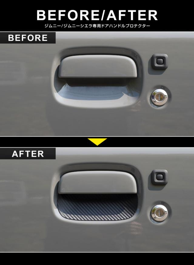 ジムニー ジムニーシエラ JB64W JB74W 専用パーツ ドアハンドルプロテクター マグネットタイプ 2P カーボン柄 選べる2色 ブラック ホワイト ドアノブ 傷防止 保護 カバー ガード【メール便発送】