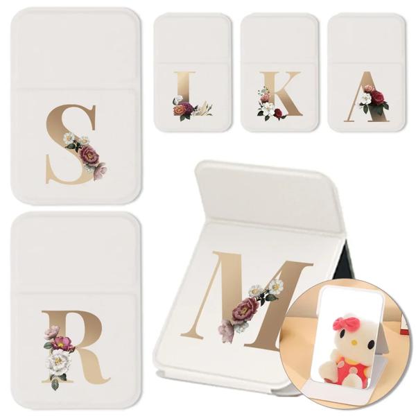 デスクトップ化粧鏡 PU レザーシンプルなポータブルハンドヘルド化粧鏡折りたたみ式アンチスリップポケットミラーゴールドレターパターン