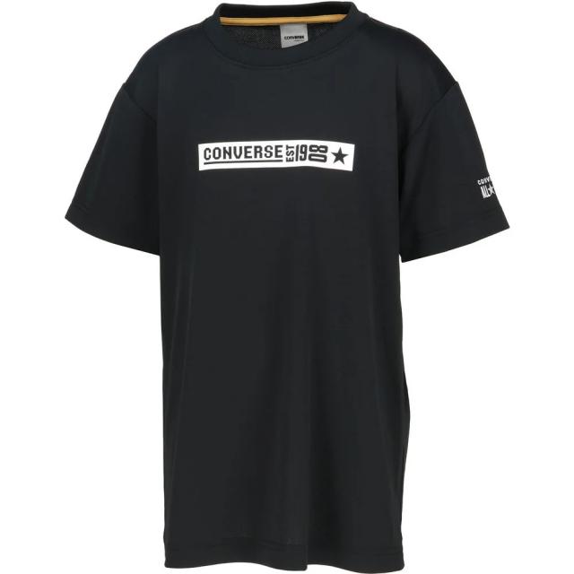 コンバース Tシャツ 半袖 ジュニア プリントTシャツ 吸汗速乾 シンプルロゴ ブラック×ホワイト CB451354-1911