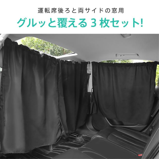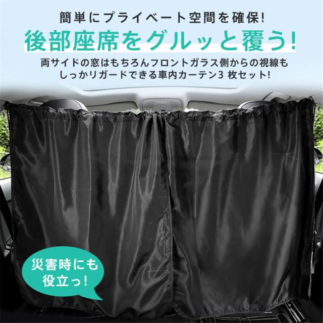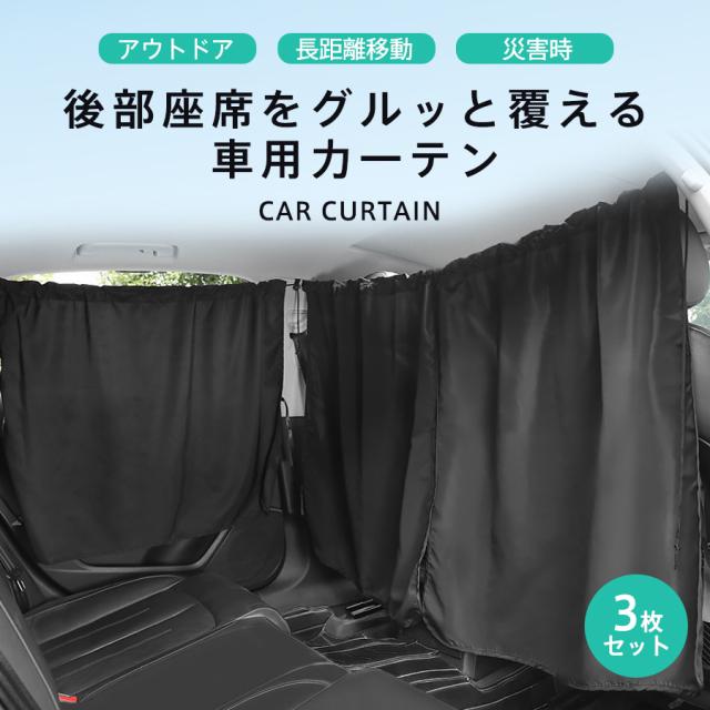 車用カーテン 車内カーテン 3枚セット 日除け サンシェード 収納袋付 UVカット 着脱簡単 間仕切り 遮光カーテン 目隠し アウ