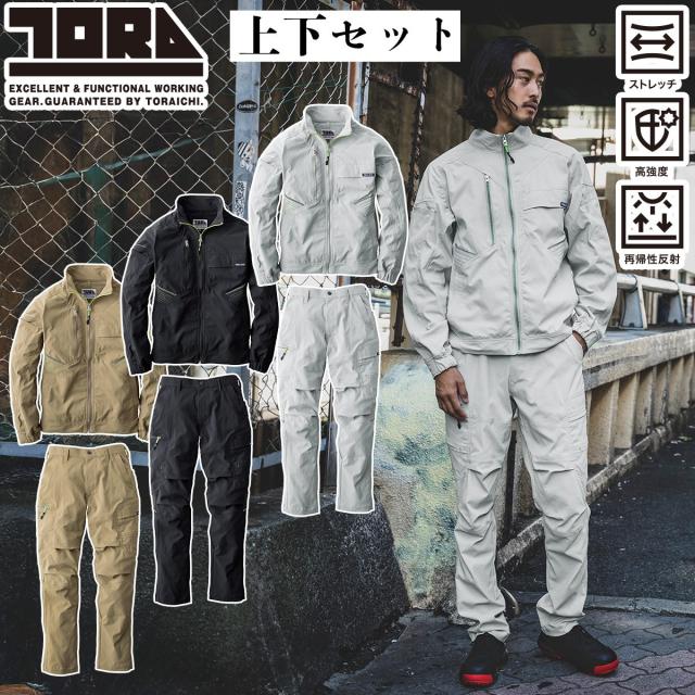 2025年新商品 寅壱 ワークジャケット カーゴパンツ 上下セット 9551-124 9551-219 耐久性 接触冷感性 ストレッチ 再帰性反射 制電糸 春夏 熱中症対策 メンズ 男女兼用 現場 作業着 作業ズボン TORA