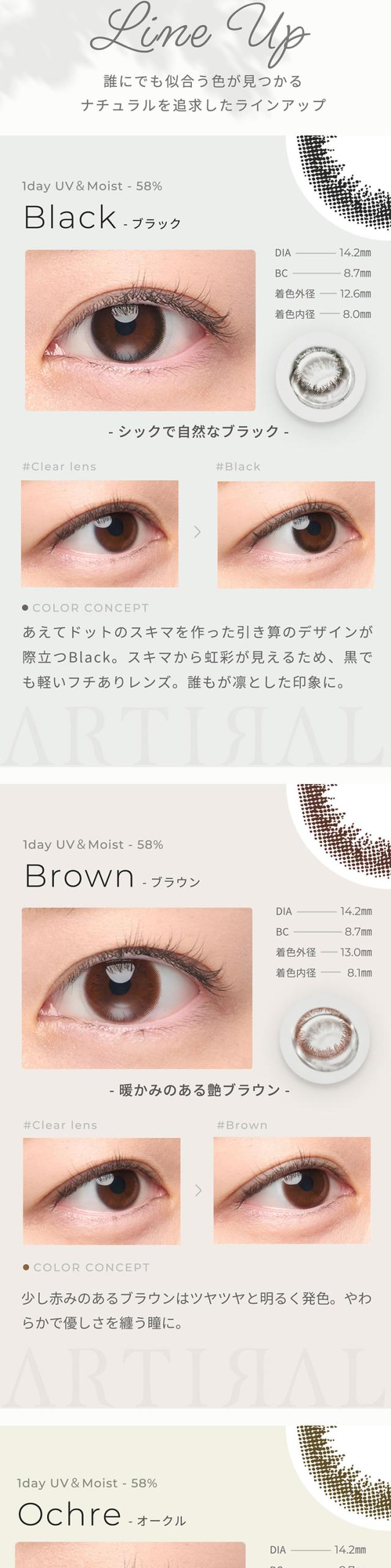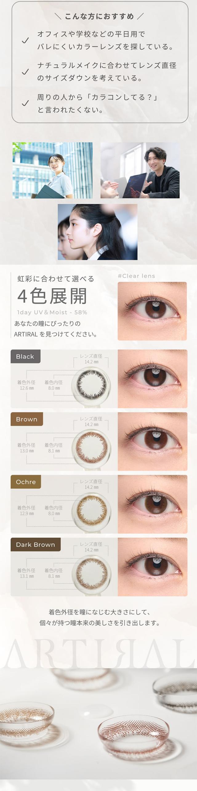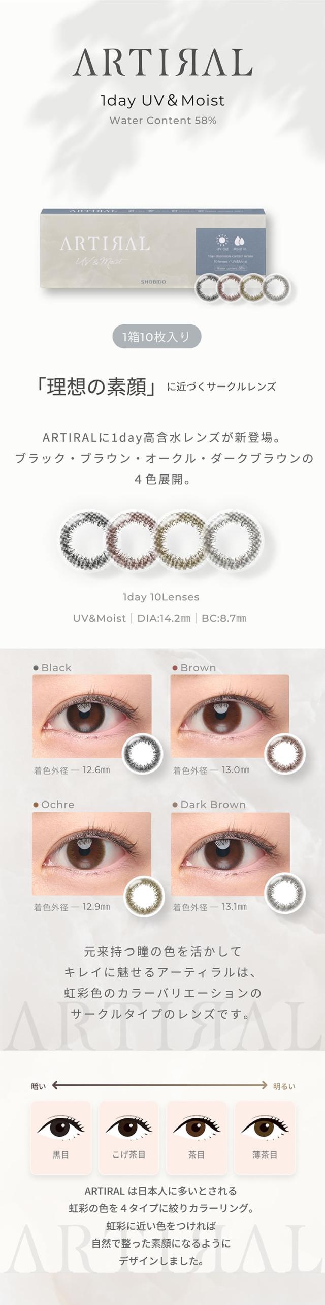 ★3箱以上で990円OFFクーポン★ アーティラル UVM ワンデー 10枚 ◆カラコン 1day 度あり 度なし ブラウン ブラック オークル ダークブラウン バレない すっぴん 裸眼風 疲れにくい 学校 職場 バイト ナチュラル◆