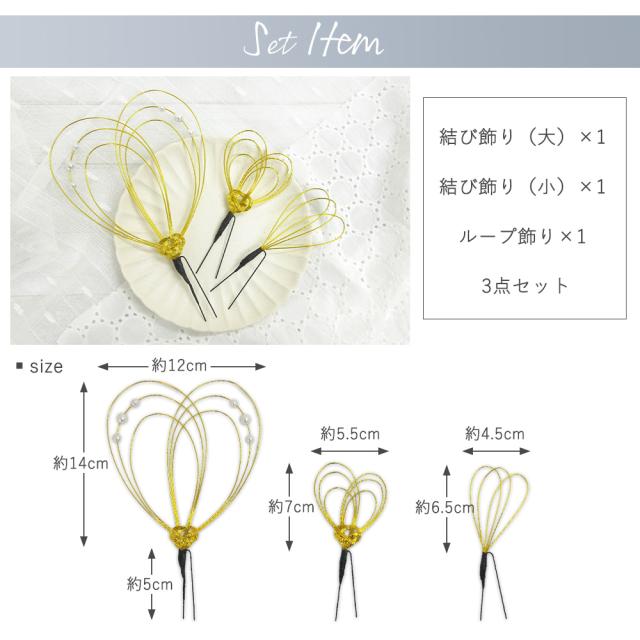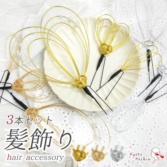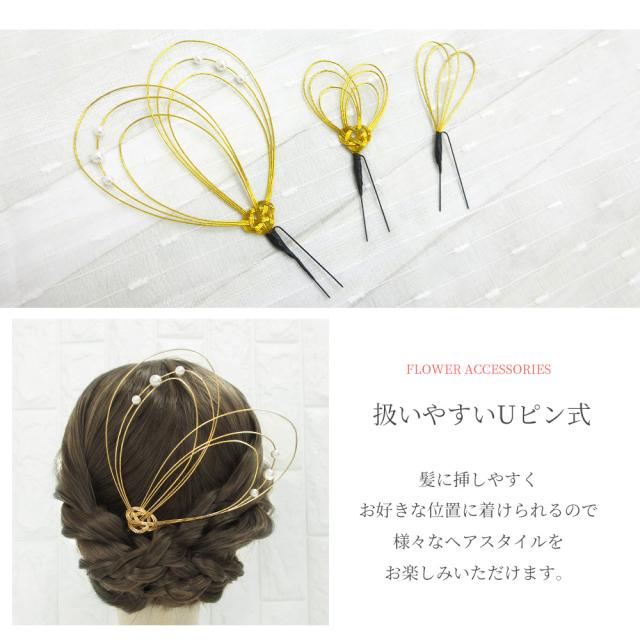 【3セットまでメール便送料無料】成人式 振袖 髪飾り 3点セット パール 水引飾り ゴールド シルバー 金 銀 シャンパンゴールド ヘアアクセサリー 和装 お洒落 華やか / 前撮り 七五三 753 浴衣 袴 入学式 卒業式 結婚式 ブライダル ウェディング 披露宴