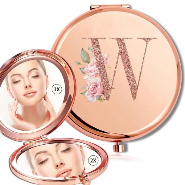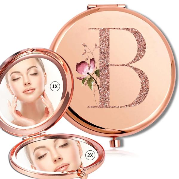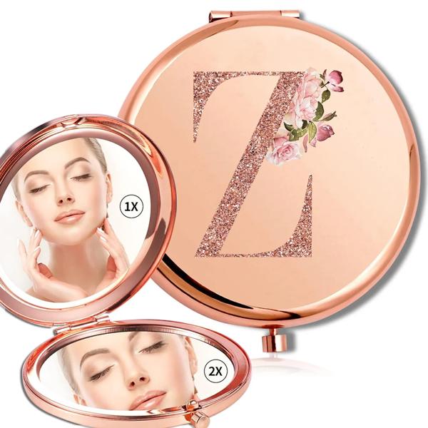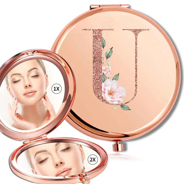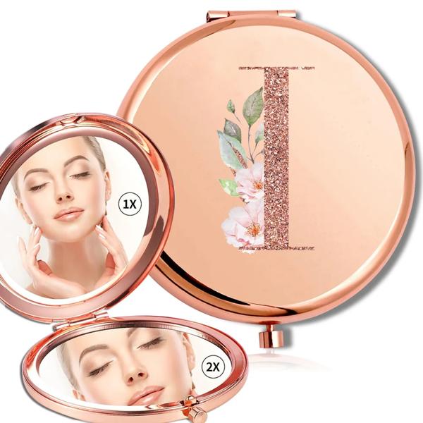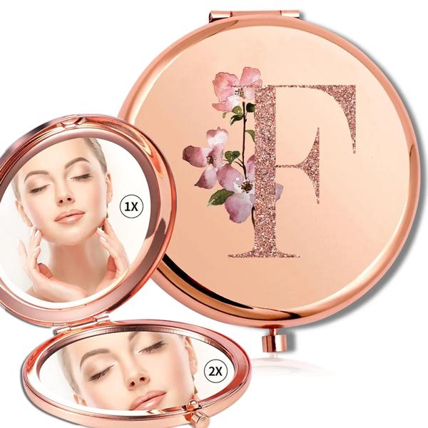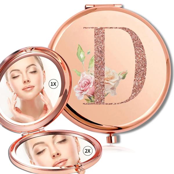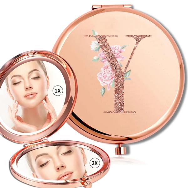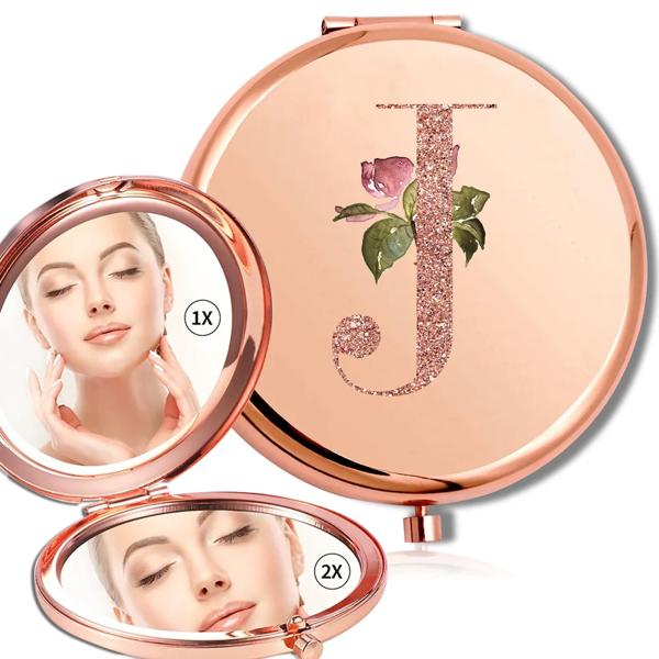 拡大鏡メイクラウンドミラー両面金属化粧品ポータブルルックガラスコンパクトハンドヘルドミラーローズゴールド文字パターン